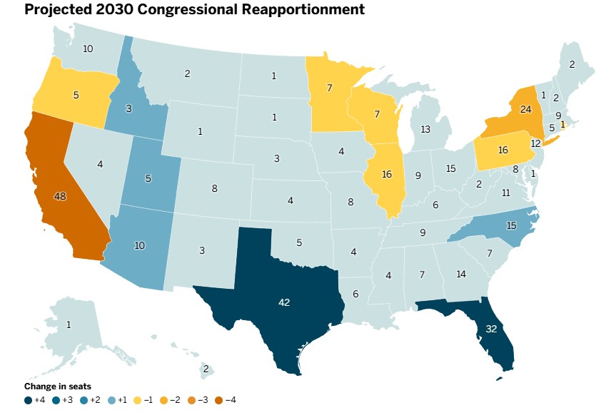 2) Estimates for the 2030 census already show the GOP picking up 10+ electoral votes and seats