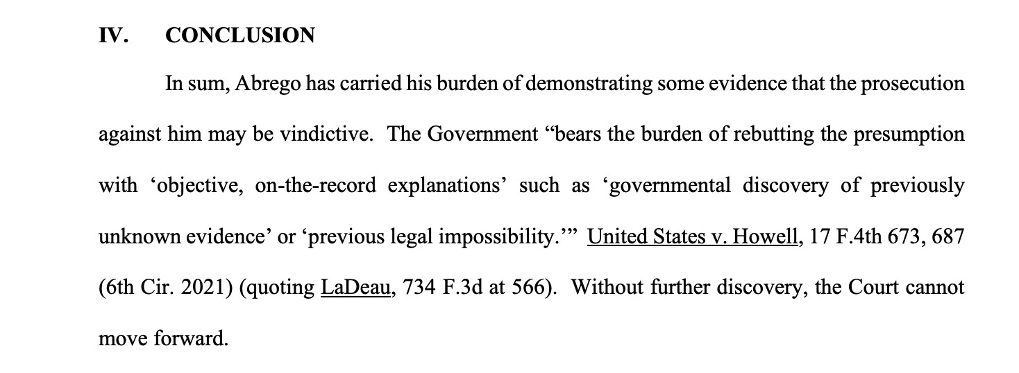BREAKING: A federal judge finds that there is evidence Kilmar Abrego was VINDICTIVELY PROSECUTED. The judge GRANTS Abrego's motion for discovery and a hearing, and the government must now PROVE it did not vindictively prosecute Mr. Abrego. 1/