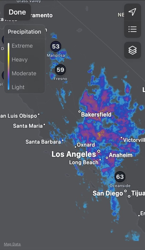 (985 posts)So far it's just been light rain but the heavy stuff is suppose to hit around 2 am and it will last for about 12 hours. The rain will continue off and on for the the next couple of days. Fortunately, I have nothing to do for the weekend but I have a new book to read so that will keep me busy. The local news is saying we can expect to get about 2 inches along the coast where I live.