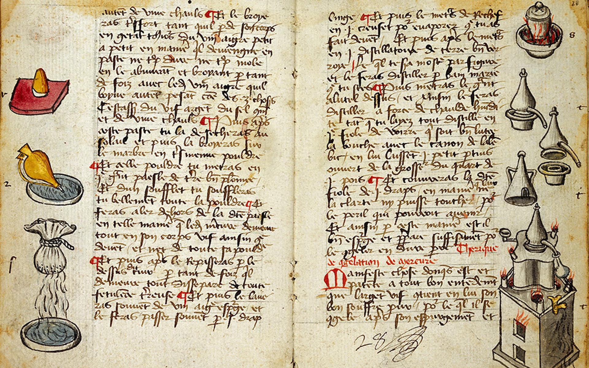 An illuminated page from a book on alchemical processes and receipts Ymage de vie Raymundus Lullius, late 15th century. Photo courtesy Wellcome Images