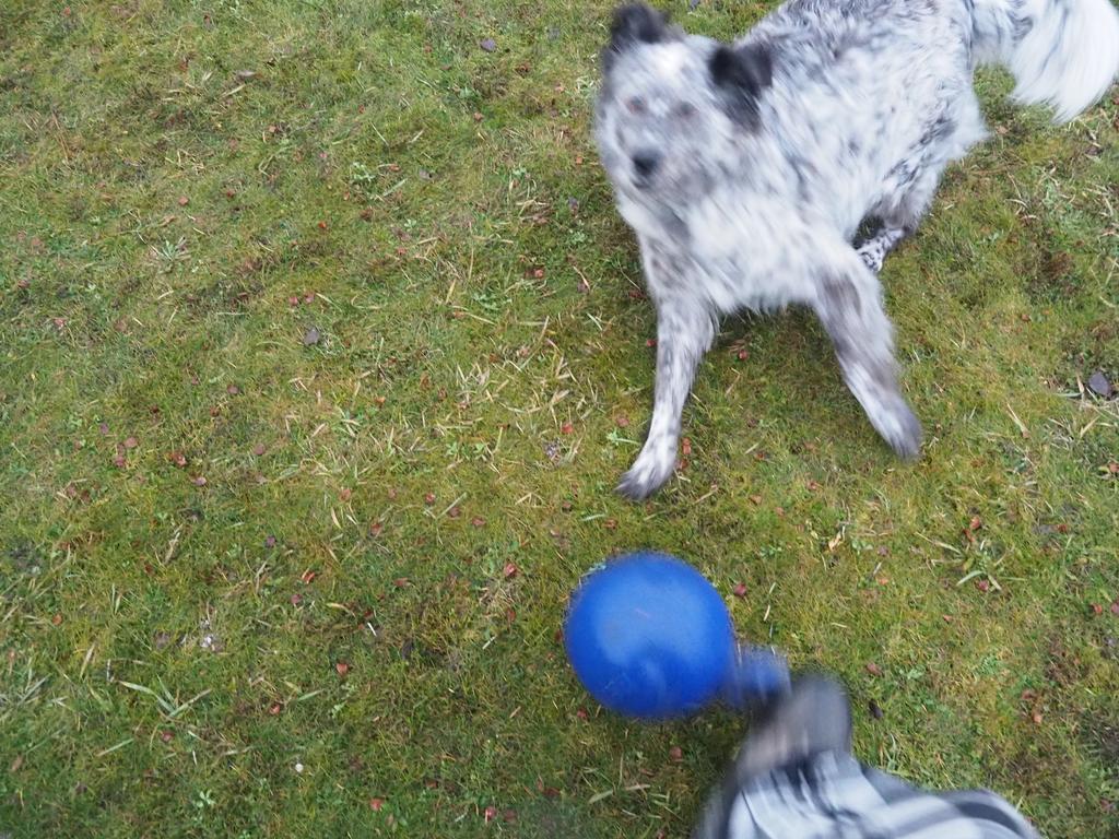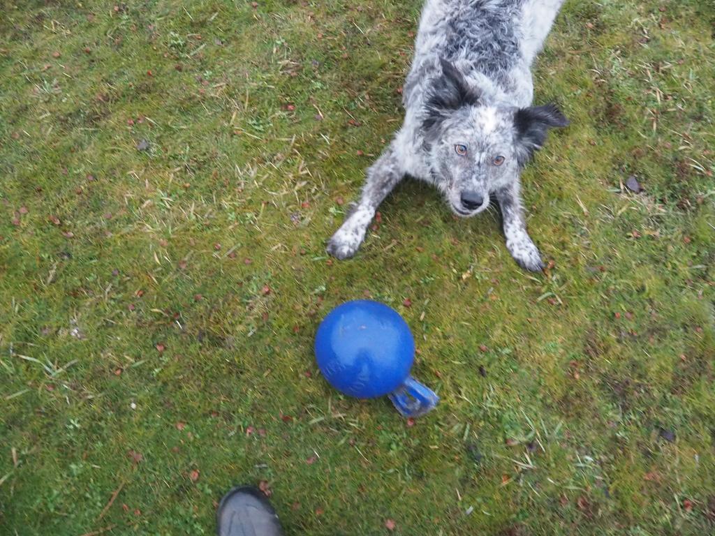 Asked Shadow to go check the mail, so she grabbed up her Jolly Ball.