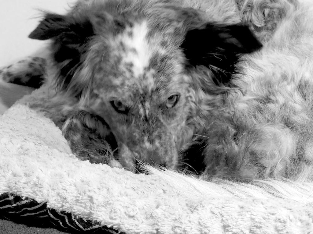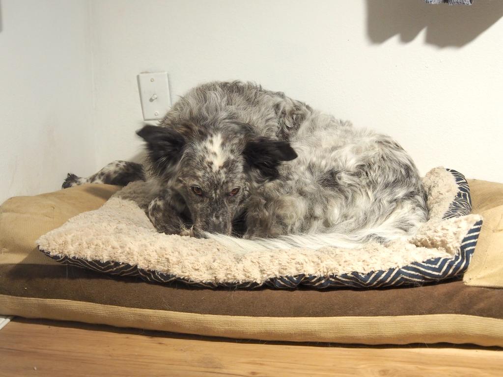 We came back inside, Shadow got a drink of water and collapsed on her day bed.