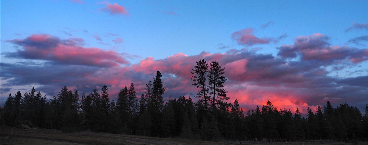 The eastern sky reflecting pink as the sun set in the west.