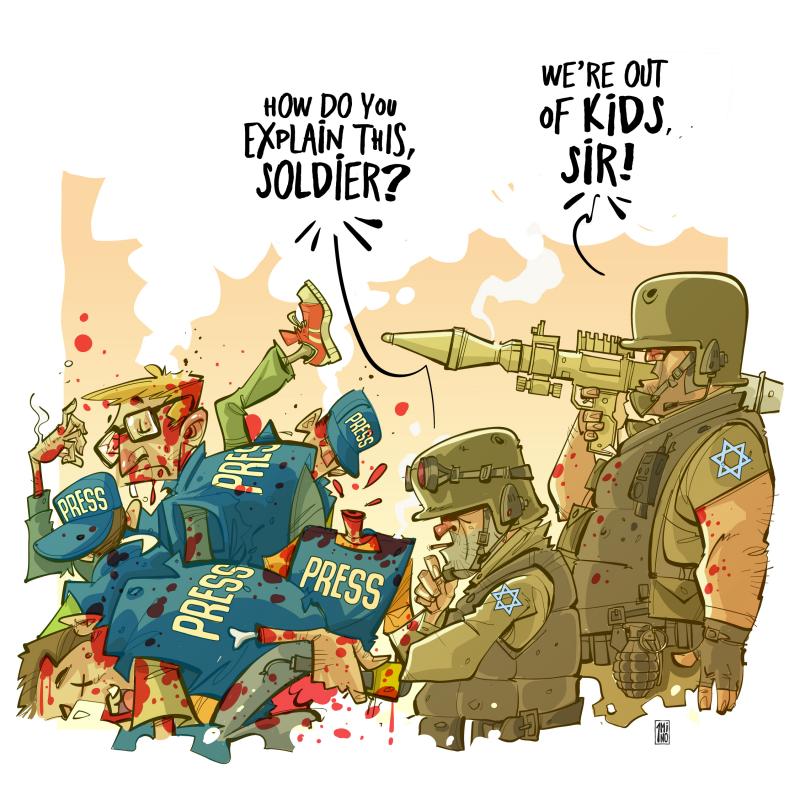 The IDF mudering journalists because they've "run out of children" is especially poignant.